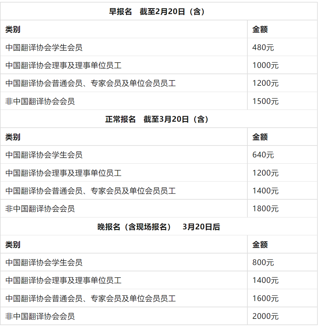 请在提交报名表当日完成注册费缴纳。本次会议支持微信/支付宝支付和对公转账。缴费时,请务必备注“姓名+单位+中国译协年会”。