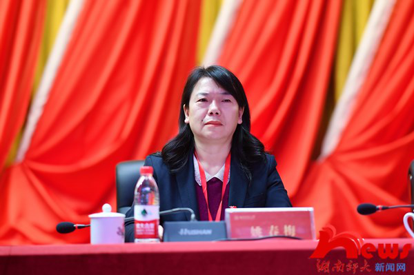 姚春梅宣读省委组织部同意我校召开第十一次党代会的批复