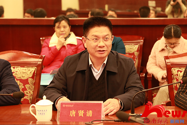 刘起军代表学校对七位老师的加入表示热烈欢迎。他表示,我校是一所有传统、有积淀、有底蕴的大学,是一所在国内乃至国际上很有影响的大学。作为地处内陆的省属高校,建校八十余年来,我校一直行进在中国高校的先进行列,作为师大人,要有这份底气,有这份自豪。他强调,我校能取得的这样的成绩和地位,得益于高度重视师资队伍建设,坚定不移的实施人才强校战略。在未来日趋激烈的高校发展竞争中学校要占据主动,仍然要靠坚定不移地持续实施人才强校战略,加强师资队伍建设。他指出,我校也是一所有温情的大学,学校最看重、最关心和最爱护的是我们的老师,是我们的学生。举办潇湘学者聘任仪式,就是学校这种办学理念和根本价值观的直接体现。学校将进一步建立和完善教师荣誉制度,关心和支持教师的事业发展,努力为大家教书育人和学术研究提供尽可能好的环境和条件。他希望大家来校后不仅发挥好自己已有的优势作出更多更好的成绩,而且要更好地发挥示范和带动作用,带动所在的学科和学院整体发展,实现个人和学校的和谐发展、共同进步。