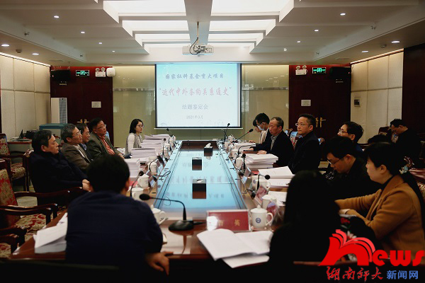专家组进行现场提问与讨论评议,李育民教授进行了答辩与回应。专家们认为,本项目研究意义重大,有益于深化对中国近代史的认识。项目组很好地实现了研究目标,最终成果弥补了中国近代史研究领域的薄弱环节,开辟了中外条约关系研究的新领域,纠正和弥补了以往研究中的缺陷与不足,建构了中外条约关系通史研究的分析框架,实现了话语体系的重大推进。专家们建议项目组可关注条约的实施情况以及实施过程中政治、经济、外交、文化等历史背景对其影响,进一步深化和完善研究。