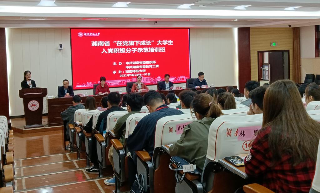 (供稿 党委组织部(党校))3月29日上午,由省委组织部、省委教育工委主办、我校承办的湖南省“在党旗下成长”大学生入党积极分子示范培训班在我校开班,校党委委员、副校长王辉在开班仪式上致辞,省委组织部党管处副处长刘卓、省委教育工委组织部二级调研员刘素莹等出席开班仪式并讲话。仪式由我校党校常务副校长兼党委组织部副部长袁道香主持。