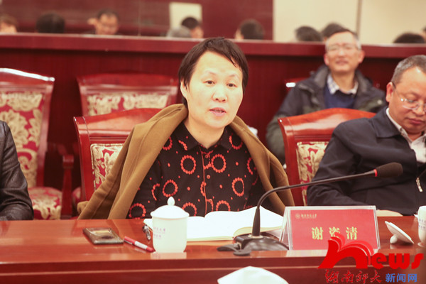 谢资清代表学校对调研组的到来表示欢迎,对省教育厅一直以来给予我校的关心与支持表示感谢。她强调,科技成果转化是实施创新的重要手段,是促进经济社会发展的强大动力,促进高校科技成果转移转化,对推动我省“三高四新”战略实施与“双一流”学科建设具有重要意义。她表示,省教育厅此行调研,有助于推动我校科技成果转化,引领我校教师把论文写在三湘大地上,更好地服务于现代化新湖南建设。