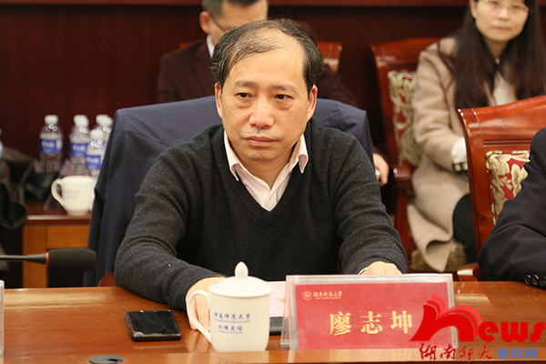 廖志坤对我校的热情接待表示感谢,他向大家简要介绍了吉首大学的基本情况和两校的合作发展渊源。他希望通过此次交流,学习我校在学科建设、人才培养、资源转化等方面的优秀经验,解决学校发展中遇到的问题,并不断加强与我校的沟通合作,加深两校友谊,携手共同进步。