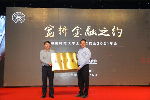 王辉向龚新高、刘明耀颁发聘书,并代表学校向上海校友会颁授“校友之家”牌匾。