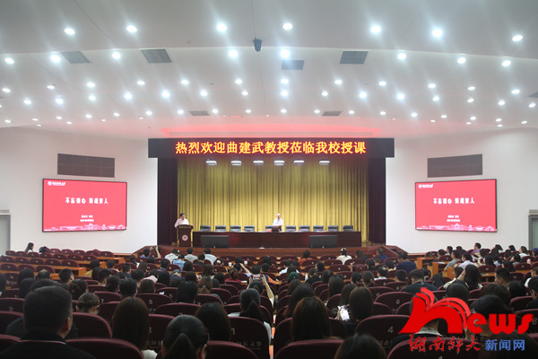 聘任仪式结束后,曲建武开展以“不忘初心 铸魂育人”为主题的专题讲座。他从大学文化、政治视野和办人民满意的高等教育三方面阐述了高校辅导员的价值和意义。他指出,“铸魂育人”就是要求教师坚定理想信念,把握思想脉搏,脚踏实地工作,把爱党爱国教育放在首位,教育学生为实现中国梦而奋斗,同时注重少数民族学生的情况,维护民族团结。他强调,教师在提高自身科研水平的同时,必须不忘做好学生工作,关心学生生活;教师应在网络思想教育、遵纪守法意识、体育锻炼等多方面加强学生管理工作,促进学生综合发展。