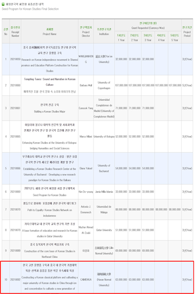 此次申请项目属于韩国国家级重点全球招标项目--国际韩国学孵化型项目,是韩国教育部为推动海外高校及研究机构的韩国学教育研究发展而面向全球发布的政府主导型研究项目。该项目于2009年正式启动,每年在全世界资助8-10项,中国地区每年2项左右,在全球范围内的韩国学领域有着广泛而深刻的影响。