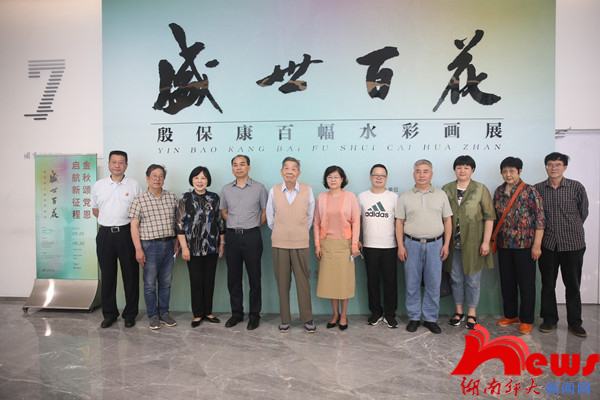孔寅湘、黄孝亮一行首先来到湖南美术馆参观了庆祝建党100周年“盛世百花”殷保康教授水彩画展,看望慰问了殷保康教授。美术学院退休党支部书记兼关工委常务副主任胡师正教授从“一个有温度的展览,一个有情怀的展览,一个有艺术格调的展览,一个有艺术传承的展览”等4个方面介绍了殷保康教授创作“百花图为党献礼”的初衷和艺术内涵。