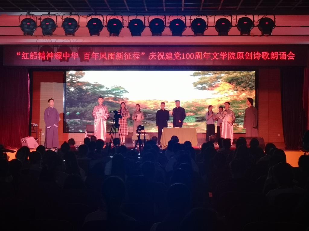 (通讯员 欧警安)为庆祝中国共产党成立100周年,推动党史学习教育深入开展,做到学史明理、学史增信、学史崇德、学史力行,6月21日晚,文学院在江边活动中心举办“红船精神耀中华 百年风雨新征程”——庆祝建党一百周年文学院原创诗歌朗诵会。校党委副书记周俊武出席朗诵会。