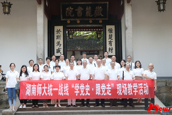 (供稿 党委统战部)为庆祝中国共产党成立100周年,进一步加强对我校无党派人士、党外知识分子思想政治引领,6月23日下午,我校组织学校各民主党派、统战团体负责人及部分班子成员到新民学会旧址、岳麓书院开展“学党史·跟党走”主题教育。校党委副书记周俊武出席学习活动。