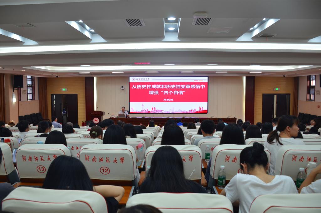 (通讯员 阳特)近日,我校党委副书记周俊武教授在中和楼中和讲堂讲授“从历史性成就和历史性变革感悟中增强‘四个自信’”专题党课。党课由旅游学院党委书记鲁良主持。