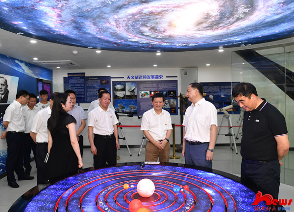 会前,郑建新一行实地考察了我校淡水鱼类发育生物学国家重点实验室育种基地、外国语言文学世界一流学科建设展厅、天文馆等地,详细了解了学科建设发展情况。