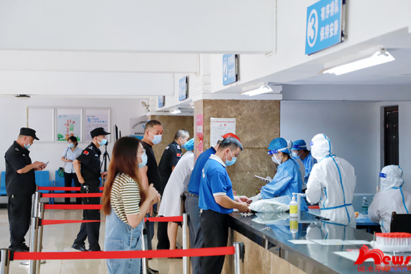 刘起军、谢资清实地考察了阳光服务大厅学校核酸检测临时采集点、木兰路食堂、图书馆等地,现场听取了相关负责人对返校师生核酸检测、食堂及图书馆等场所疫情防控准备工作情况汇报。