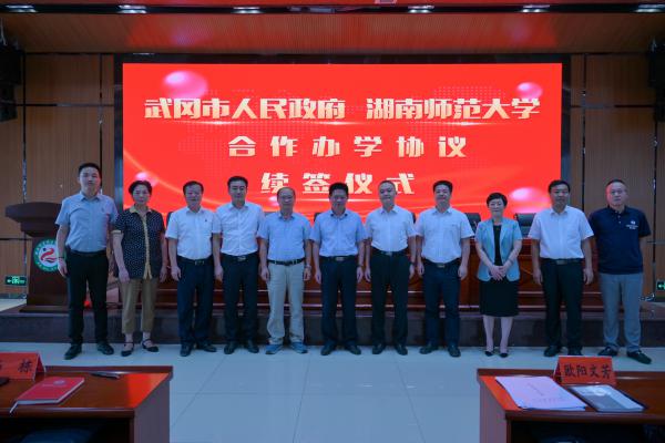 (通讯员 王政)9月14日下午,我校与武冈市人民政府合作共建附属武冈实验中学续约签署仪式在武冈市举行。武冈市代市长龚畅、我校副校长唐贤清出席仪式并代表双方签约。仪式由武冈市委常委、宣传部部长李巧云主持。