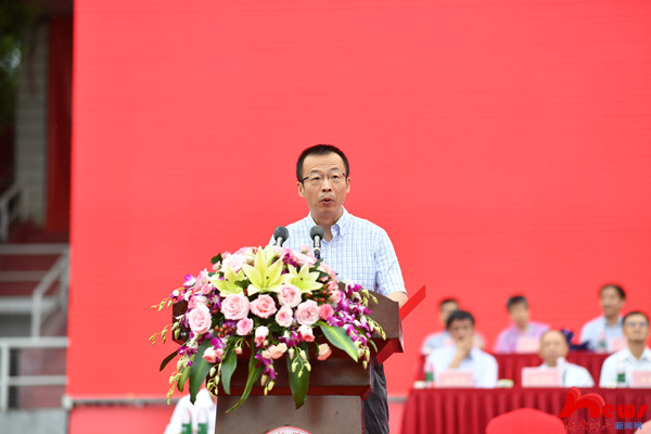 教育部长江学者特聘教授、中国科学院百人计划研究员、博士生导师、物理与电子科学学院景辉教授作为教师代表发言。他结合自身经历,与同学们分享做人做事做学问的道理。一是宁拙毋巧,二是讲信修睦。他希望同学们都能秉持“仁爱精勤”的校训,勇于担当,将个人发展与所在集体甚至国家命运联系在一起,努力修好人生基本功,做有理想、有追求的大学生,做有品质、有修养的大学生。