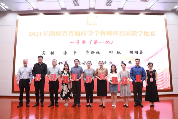 (通讯员 罗繁荣)9月28日,由湖南省教育厅主办的首届湖南省普通高等学校课程思政教学比赛决赛顺利闭幕,此次比赛旨在推动以“课程思政”为目标的课堂教学改革。我校荣获一等奖5项、二等奖1项,并获评优秀组织奖。其中,我校一等奖获奖数量位居全省高校首位。