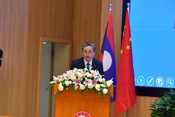 陈德海在致辞中表示,今年是中国与东盟建立对话关系30周年,也是中老建交60周年。他认为,近年来中国—东盟关系蓬勃发展,双方合作前景广阔。他希望,同学们进一步加深对中老友好、中国—东盟友好的认知,增进彼此友谊,共同推动中老全面战略合作伙伴关系、中国—东盟战略伙伴关系不断向前发展。