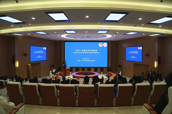 (记者 马铁泉 刘姣 李承玥)10月15日下午,老挝驻华大使坎葆·恩塔万访问我校并成功举办中国—东盟关系演讲。中国—东盟中心秘书长陈德海、老挝驻长沙总领事本·印塔巴迪、湖南省对外友好协会专职副会长郭向丽、我校校长刘起军等出席。活动由我校副校长唐贤清主持。