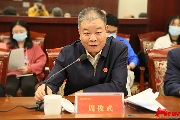 周俊武代表学校党委、行政向大会的胜利召开和新当选的校知联会常务理事会班子成员表示祝贺,对校知联会一直以来为学校发展所做出的突出贡献给予充分肯定。他对新一届常务理事会提出建议和希望:要加强思想政治引领,坚定理想信念;要努力提高服务水平,发挥蓄水池作用;要切实加强自身建设,激发基层活力。要在省委统战部和学校党委的正确领导下,进一步夯实基层基础,积极履职建言服务社会,为学校“双一流”建设和湖南“三高四新”战略发展作出积极贡献。