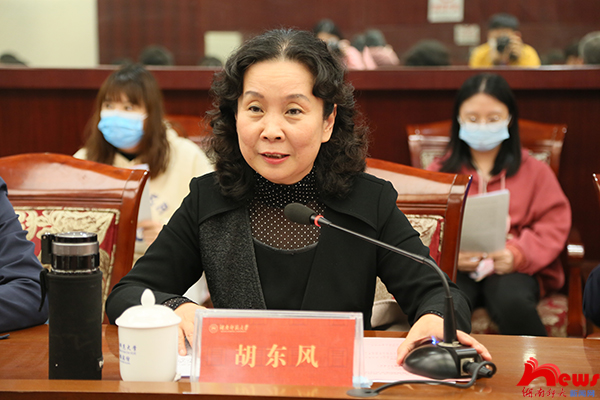胡东风充分肯定了我校统一战线工作取得的成绩,对会议的胜利召开和新一届常务理事会的当选表示祝贺。她强调知联会工作一定要认真学习贯彻《中国共产党统一战线工作条例》,加强思想政治建设,重视人才工作。同时,她寄语新一届常务理事会及全体会员:一是希望大家胸怀“两个大局”,做广泛凝聚共识的参与者;二是希望大家发挥专业优势,做积极资政建言的智多星;三是希望大家向袁隆平同志学习,做推动创新发展的实干家。