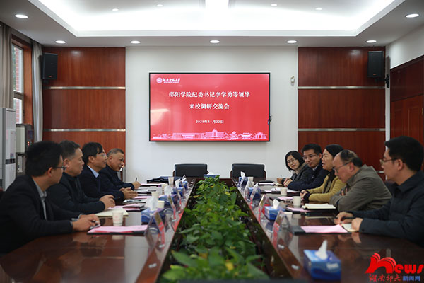 (记者 伍鸿彰 龙佳妮)11月22日下午,邵阳学院纪委书记李学勇一行来校调研交流。我校纪委书记姚春梅在校办公楼二会议室接待客人。