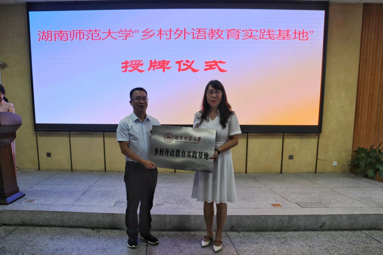 2021年7月,外国语学院赴炎陵县第一中学举行“安博线上平台乡村外语教育实践基地”授牌仪式,并捐赠教学录播设备