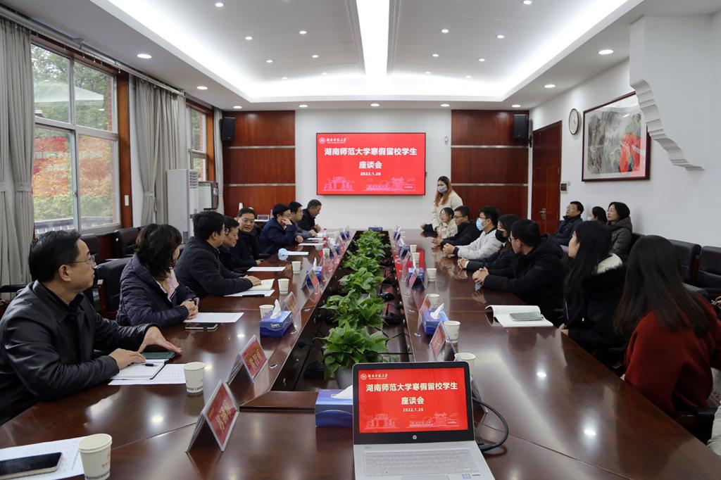 座谈会上,同学们分享了留校期间的学习生活情况。蒋洪新、刘起军、王辉向同学们致以节日问候和新春祝福,祝福同学们在新的一年里身体健康、学习顺利,嘱咐同学们要注意防疫安全、消防安全和交通安全,减少不必要的外出活动,遵守学校疫情防控和宿舍管理规定;遇到困难要及时与学校联系求助,学校将全力做好服务保障工作。希望同学们加强与家人的联系,在新春之际向家人表达感恩之情;能够在留校期间充分利用时间,学会静心思考,广泛阅读,加强锻炼,丰富生活。