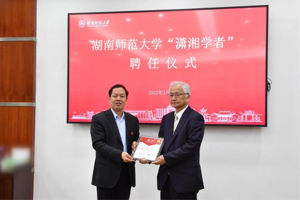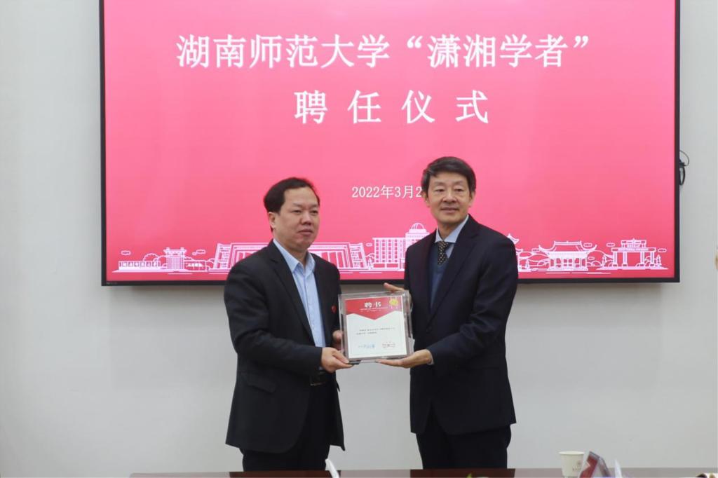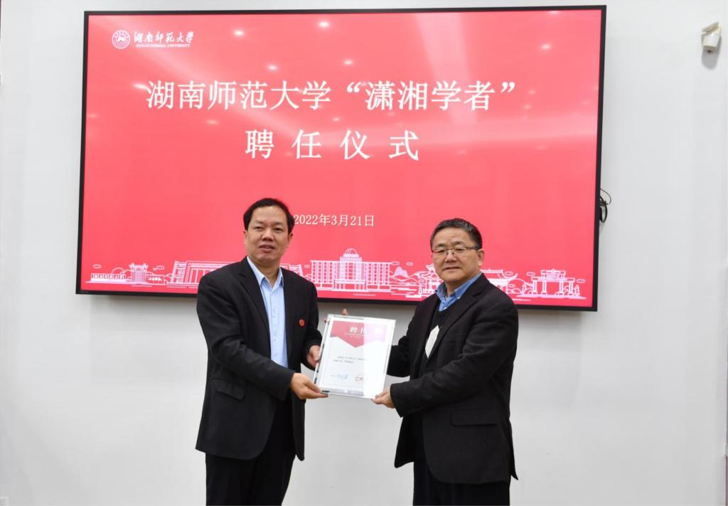 唐贤清介绍了三位受聘学者的情况。刘起军为受聘学者颁发“潇湘学者”特聘教授聘书。