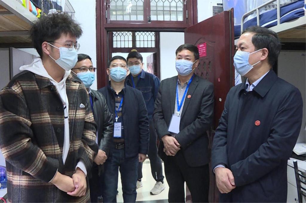 在学生宿舍,校领导与同学们亲切交流,询问了同学们的学习生活情况,并嘱咐大家,在疫情防控期间遇到任何困难要及时告知学校,学校将全力做好服务工作,为同学们的学习生活保驾护航。他们希望同学们能严格按照学校疫情防控工作要求,减少不必要的活动,保持健康心态,与学校共克时艰。