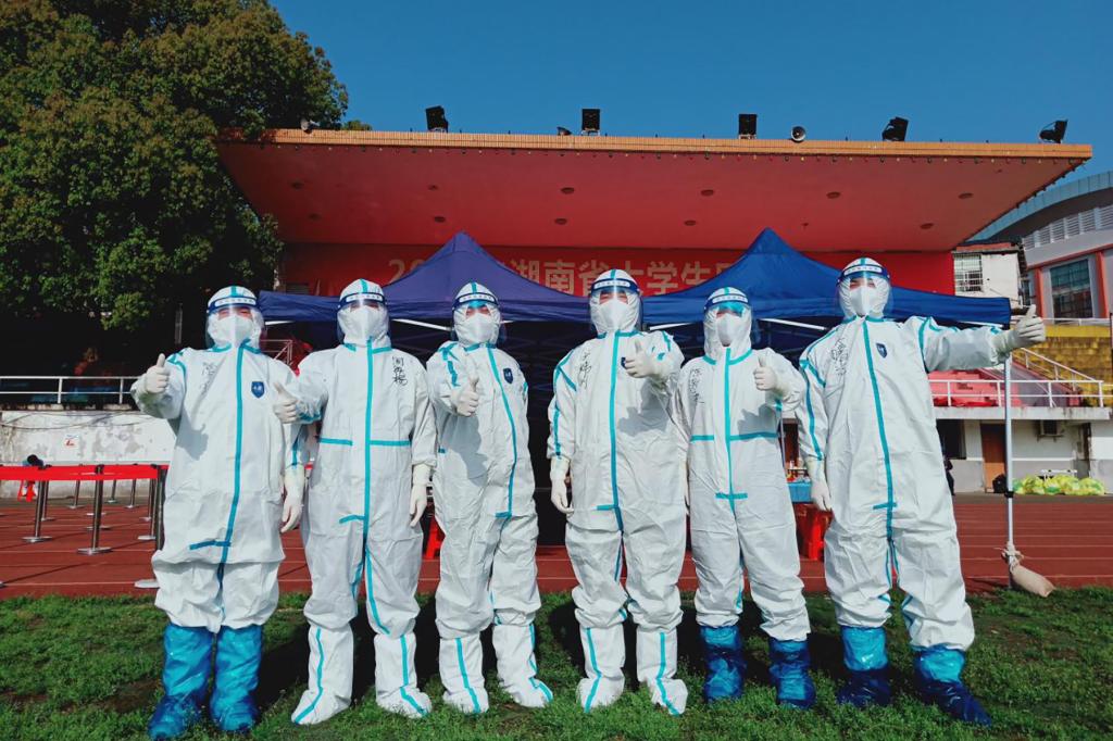 到目前为止,共有150余名党员参与志愿者行动。他们分别在学校体育馆、田径场、南院、天马学生公寓、德智园学生公寓、长塘山小区等多个点进行核酸检测志愿工作。