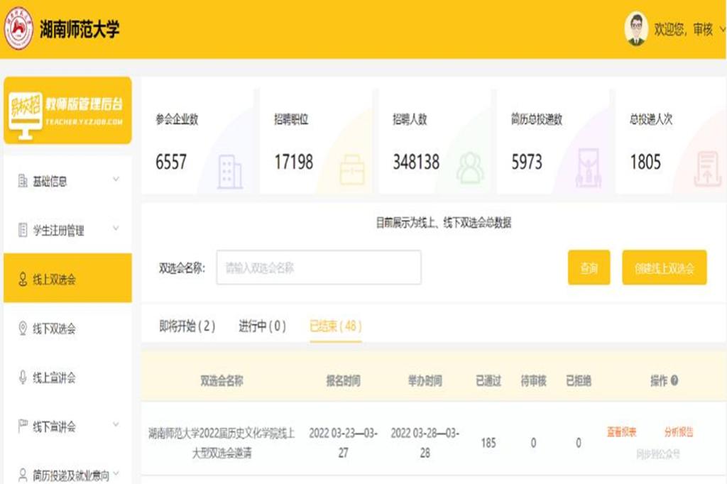 持续推进招聘拓岗,确保“校园招聘不停歇”。疫情管控期间,我校充分利用云就业平台开展线上招聘活动,积极邀约用人单位通过在线招聘、网络招聘会、空中宣讲会、远程面试等方式开展校园招聘,确保用人单位来校揽才热度不降、力度不减。截止目前,共举办校级网络招聘会3场、学院行业类网络招聘会4场,组织云宣讲86场,提供岗位2700余个,参与毕业生2400余人次。通过就业云平台网站、微信公众号、招聘工作群织密三位一体信息发布网,分层分类不间断精准推送优质招聘信息,确保就业渠道宽广、就业资源充足、就业信息畅通。