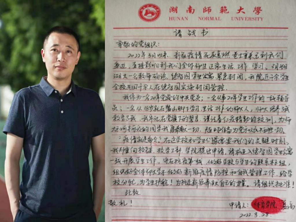 辅导员夏禹老师的手机24小时振动不断,他的眼里布满血丝,神经时刻紧绷。在爱人刚做完手术一周行动不方便、孩子在家上网课的情况下,夏禹老师舍小家为大家,毫不犹豫向学校和学院递交了请战书,同时克服一切困难毅然决然地进入了德智园的封控区。他把学生的需要放在首要位置,久而久之,他拥有了学生给他起的一个可爱的称呼——“夏妈妈”。“只要夏妈妈在,没有解决不了的难题!”这是夏禹老师班上的一名同学对他的评价。