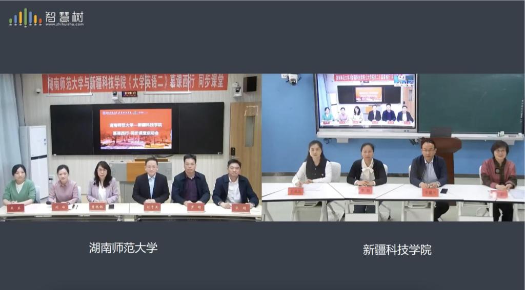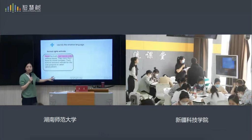 启动仪式后,我校青年教学能手、全国高校外语课程思政教学比赛特等奖获得者王兰老师在外国语学院601智慧教室,通过智慧树网的直播互动平台,开启了与新疆科技学院400余名学子的《大学英语二》课堂云同步。