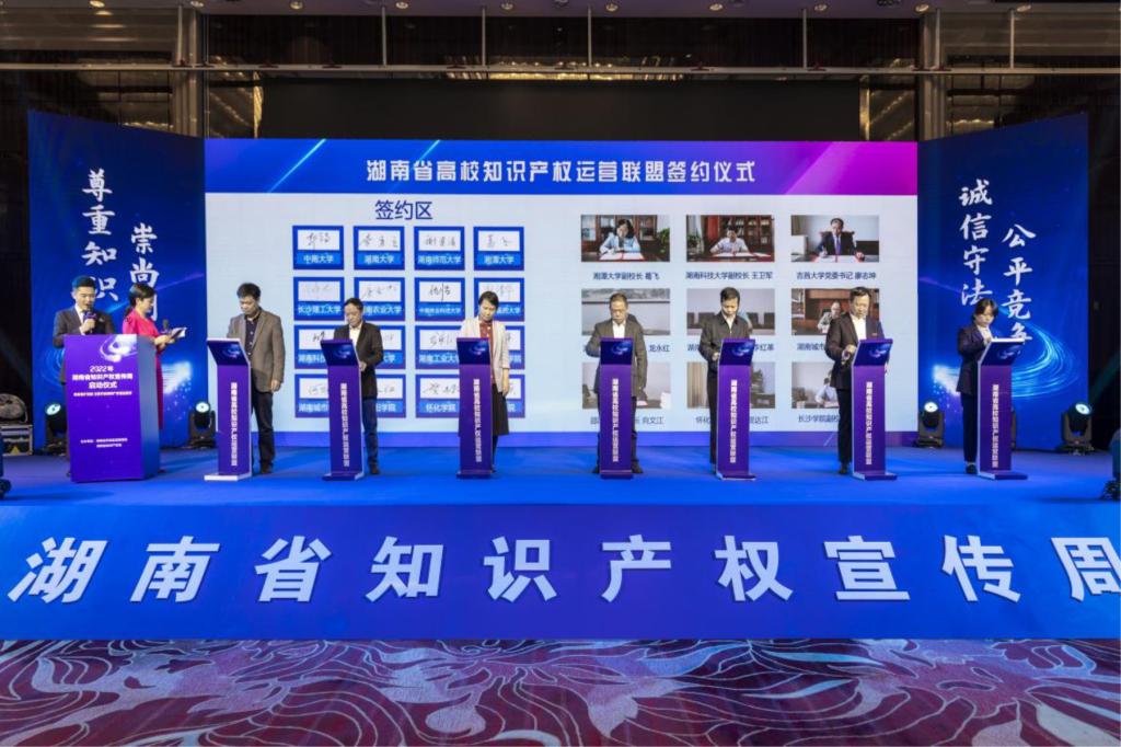 (供稿 科技处)近日,湖南省2022年知识产权宣传周启动仪式在长沙举行,副省长何报翔出席仪式并宣布活动启动,副校长谢资清代表学校出席仪式。