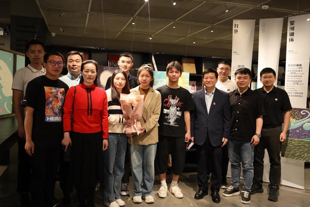 (通讯员 胡云天 戴霁斌)5月21日,校党委书记蒋洪新前往止间书店参观由外国语学院师生策划、创作的“想象的翅膀”学生创意插画诗歌展。