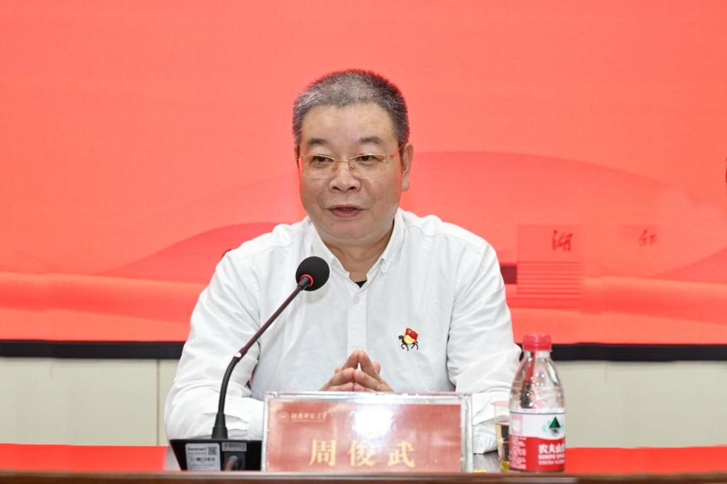 周俊武代表学校党委对新发展党员表示祝贺,为毕业生党员送上了祝福。他回顾了中国共产党百年来的苦难与辉煌,指出中国共产党百年的奋斗历程,就是不忘初心、牢记使命、奋勇前进的真实写照。他对全体党员提出了三点要求:一是坚持聚焦在主目标上,让自己走的更远;二是奔跑在主跑道上,让自己跑得更快;三是坚持奋斗在主舞台上,让自己飞的更高。