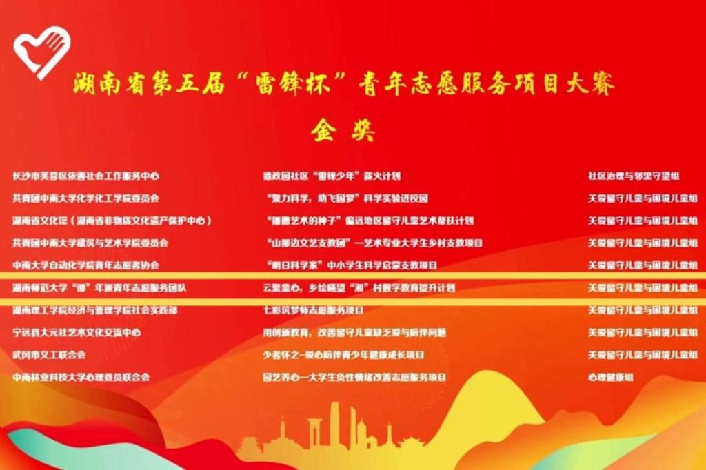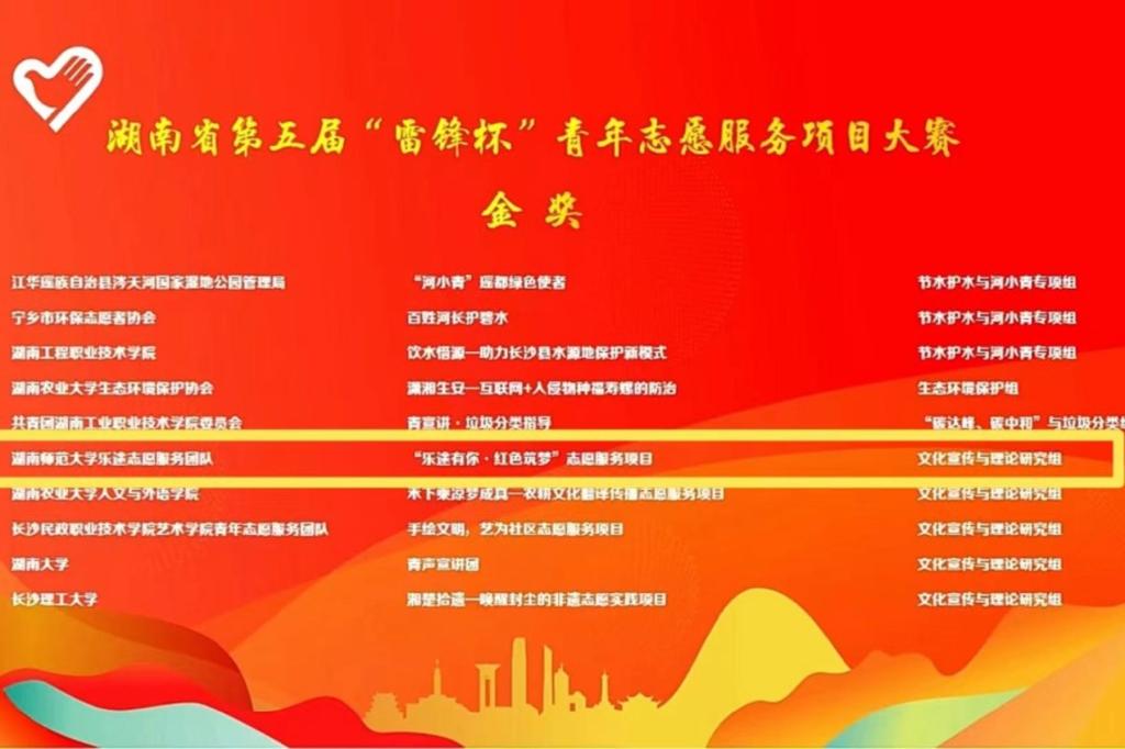 (通讯员 蒋晓珂 刘茜)近日,在第五届湖南省青年志愿服务项目大赛中我校旅游学院2020级吴誉琴学生团队、赵敏学生团队荣获全省金奖。