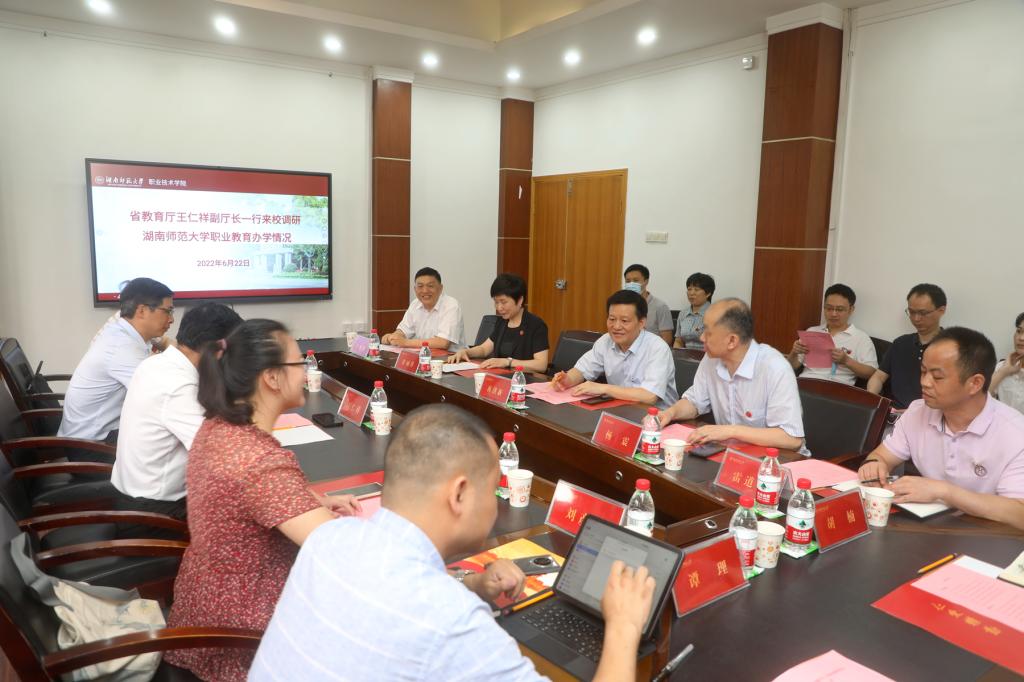 (供稿 工程与设计学院)6月22日,省教育厅副厅长王仁祥一行来我校考察调研职业技术教育发展情况并举行座谈会。我校党委书记蒋洪新陪同调研,座谈会由副校长杨震主持。