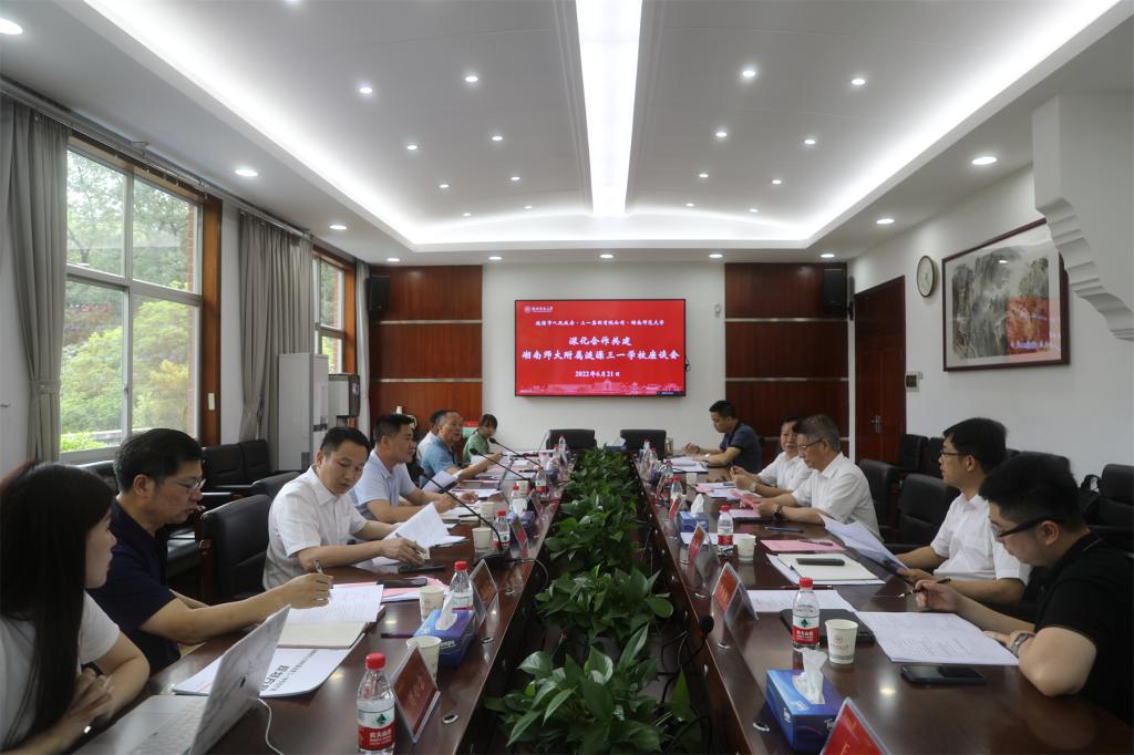 (通讯员 王政)6月21日下午,涟源市、三一集团及我校三方深化合作共建附属涟源三一学校座谈会在我校召开。涟源市副市长周新科,三一集团副总裁、董事长办公室主任张科,我校副校长唐贤清出席座谈会。座谈会由我校基础教育发展中心主任龚民主持。