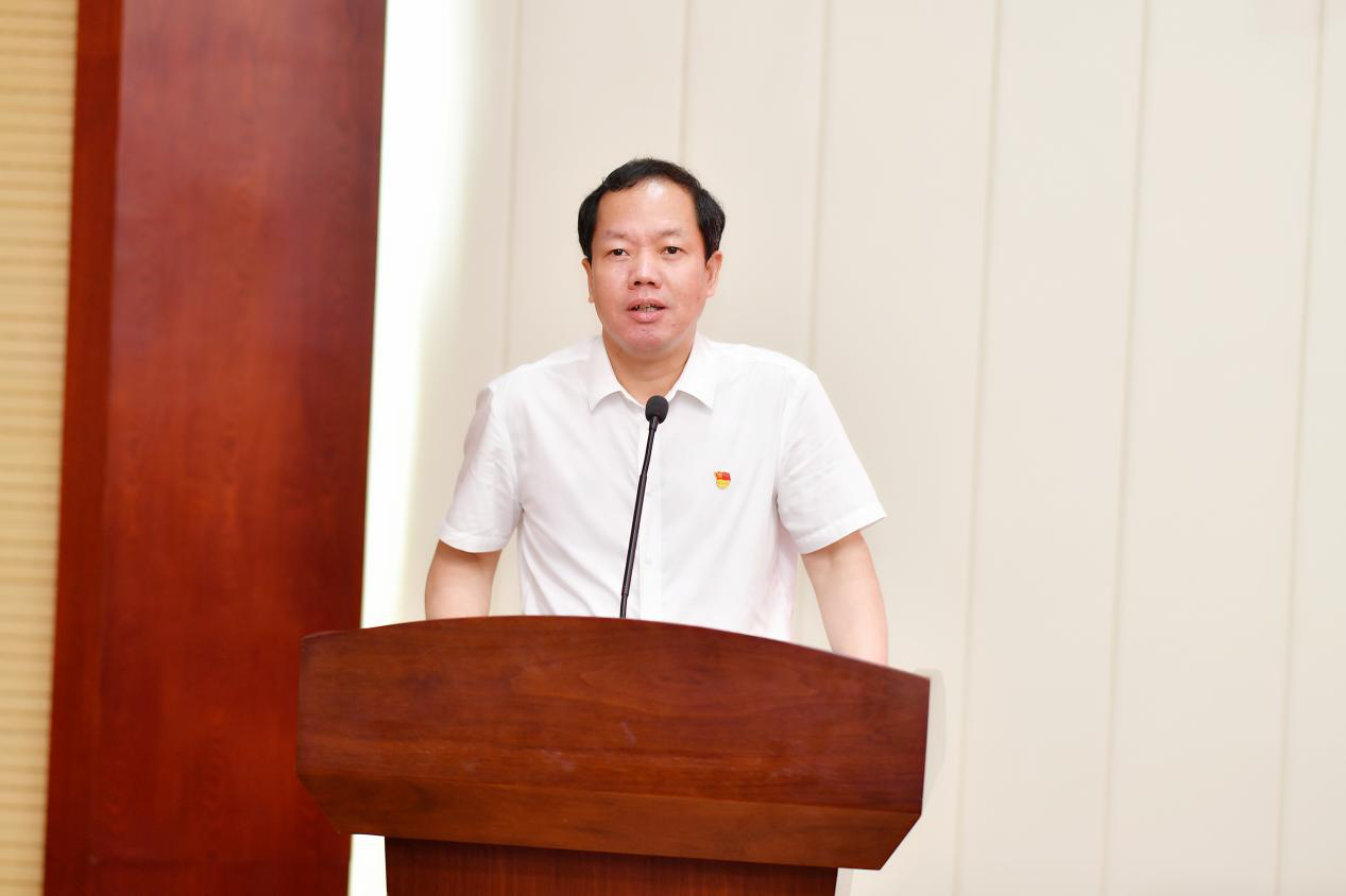 周俊武宣读《安博线上平台安博线上平台模范机关创建工作的表彰决定》,机关党委副书记粟用湘宣读《机关党委安博线上平台表彰疫情防控志愿者的决定》。