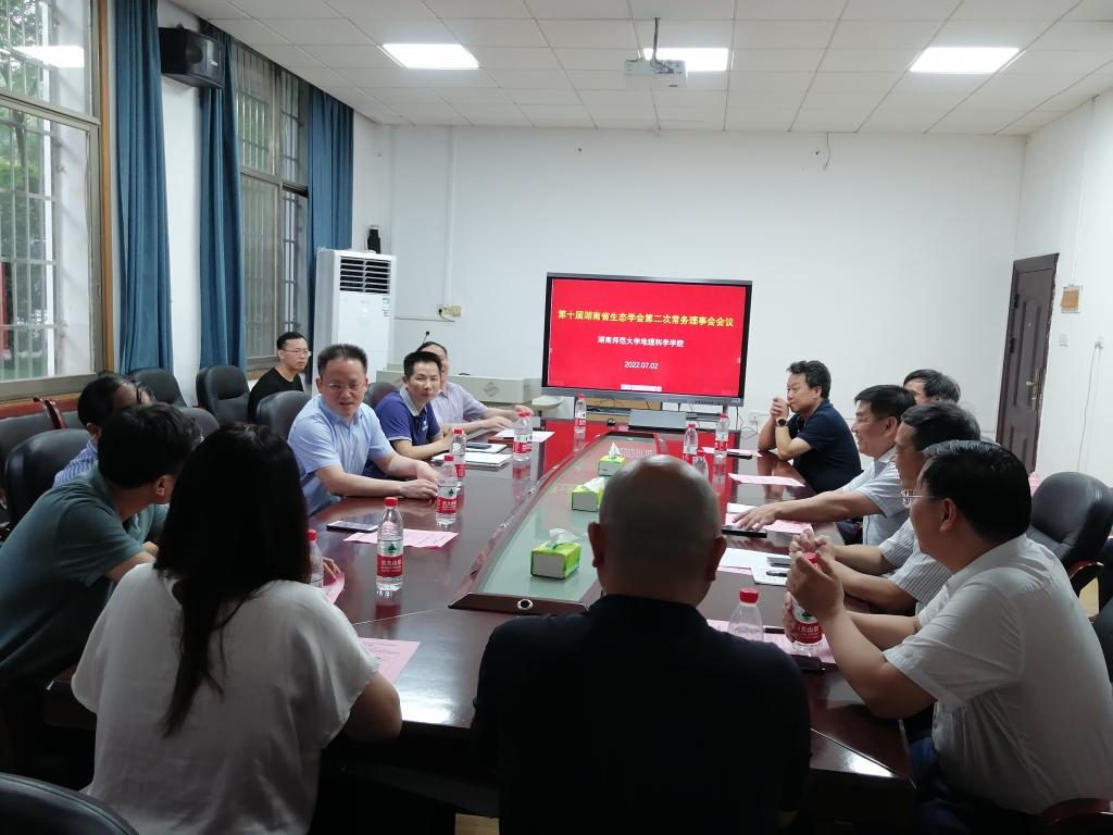 (通讯员 刘窑军)7月2日下午,第十届湖南省生态学会第二次常务理事会在我校地理科学学院召开。湖南省科协学会部部长喻泽红,湖南省生态学会监事长、中国科学院亚热带农业生态研究所党委书记王克林,湖南省生态学会理事长、中国科学院亚热带农业生态研究所副所长陈洪松,我校副校长刘子兰出席会议。