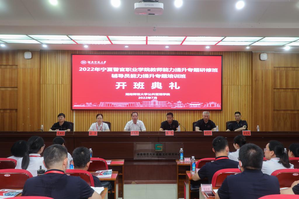 (记者 冯振辉 刘姣)7月17日上午,我校在景德楼报告厅举办宁夏警官职业学院教师能力提升专题研修班、辅导员能力提升专题培训班开班仪式。宁夏警官职业学院党委书记梅军、我校校长刘起军出席仪式。仪式由我校公共管理学院院长毛新志主持。
