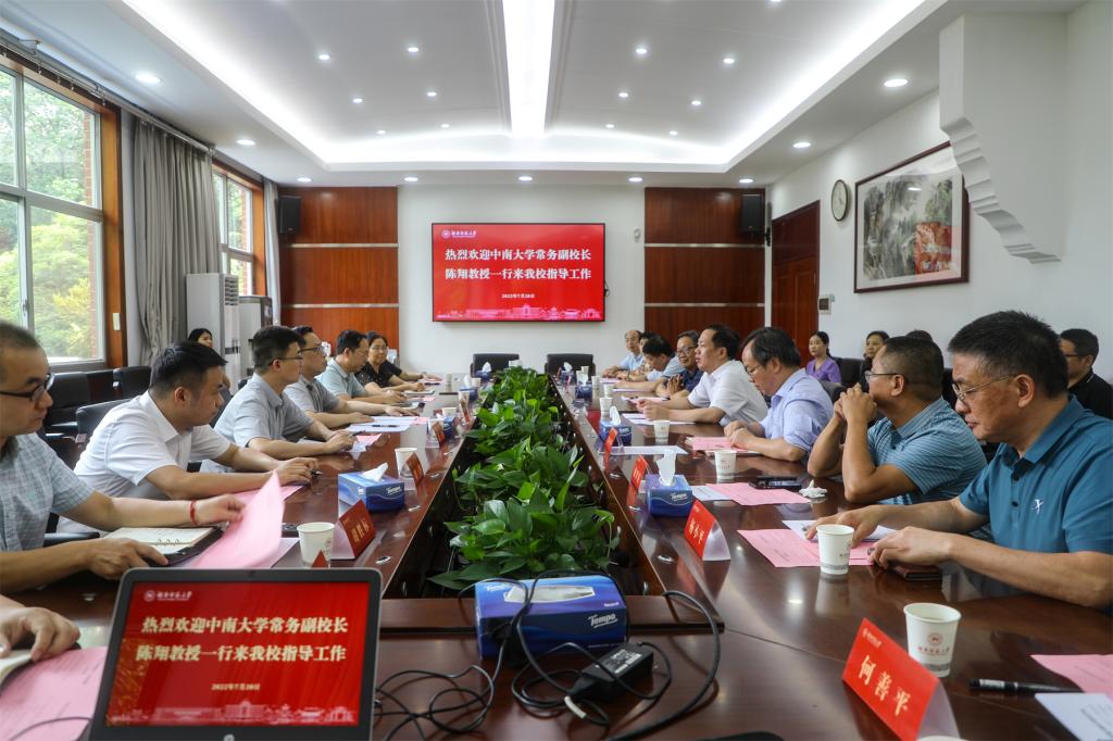 (记者 冯振辉 刘姣)7月20日下午,中南大学常务副校长陈翔一行来到我校,针对芙蓉实验室筹建、学校学科及人才队伍建设等工作,对生命科学学院、医学院、化学化工学院进行调研指导。调研座谈会由我校校长刘起军主持。