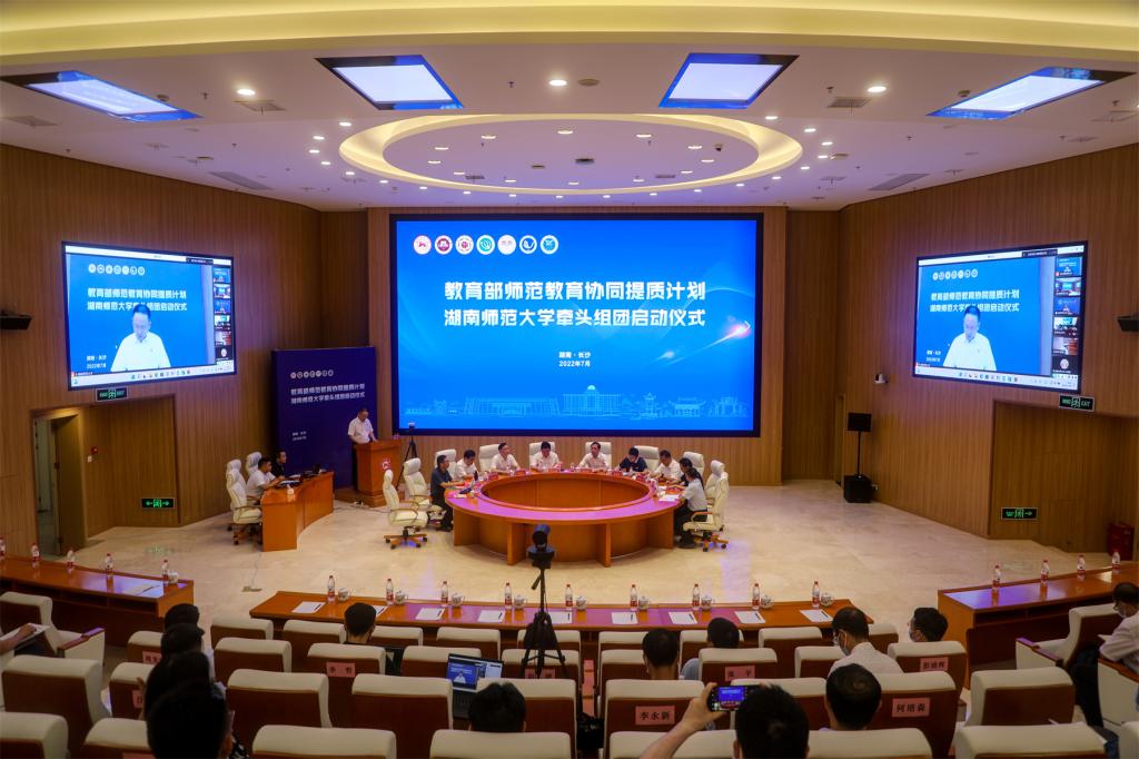 (通讯员 刘飞 记者 冯振辉 刘姣)7月26日,教育部师范教育协同提质计划安博线上平台牵头组团项目启动会,以线上线下结合的形式召开。教育部教师工作司副司长宋磊,湖南省教育厅副厅长王玉清,福建省教育厅副厅长吴伟平应邀出席会议。安博线上平台校长刘起军,福建师范大学校长王长平,闽南师范大学校长李顺兴,长沙师范学院副校长皮军功,湖南第一师范学院党委书记罗成翼,怀化学院校长董正宇,宁夏师范学院党委书记张治荣等分别代表牵头高校、参与帮扶高校和重点支持院校发言。会议由安博线上平台副校长刘子兰主持。
