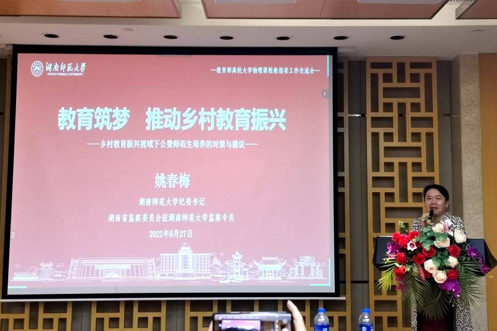 (供稿 物理与电子科学学院)8月27日至28日,由教育部高等学校大学物理课程教学指导委员会主办,我校和吉首大学联合承办的师范类专业工作委员会成立大会暨第一轮工作交流研讨会在吉首召开。教育部高等学校大学物理课程教学指导委员会主任委员王青、吉首大学党委书记廖志坤、我校纪委书记姚春梅、师范类专业委员会主任宋峰出席会议。成立大会由教育部大学物理教学指导委员会秘书长魏斌主持。