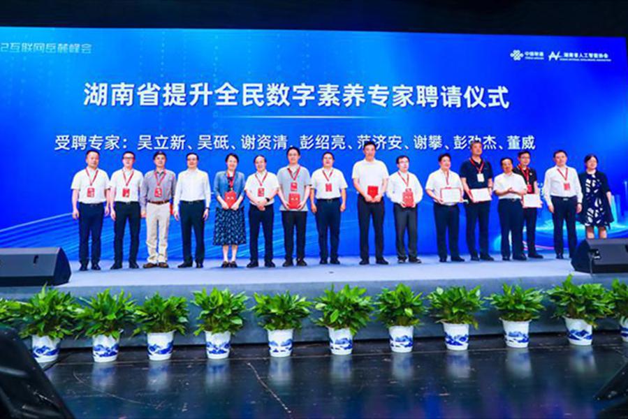 活动现场,与会领导为谢资清等8名专家颁发“湖南省提升全民数字素养专家”聘书。