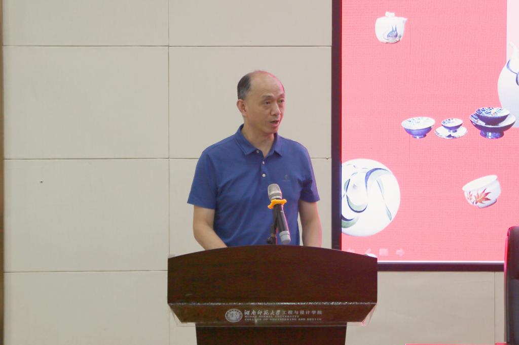 教育部学位中心专家、清华大学李正安教授作为指导教师发言。他表示,此次展览是借助国家艺术基金提供的平台,围绕着醴陵釉下五彩瓷文化创意设计主题,在了解瓷器历史和制瓷材料的基础上进行的有益探索。他认为,其成果向社会展示,可以更好地发挥教育的作用,整合教育资源,体现教育面向社会的优势,使醴陵釉下五彩瓷的传统文化和独门技艺得以可持续发展。