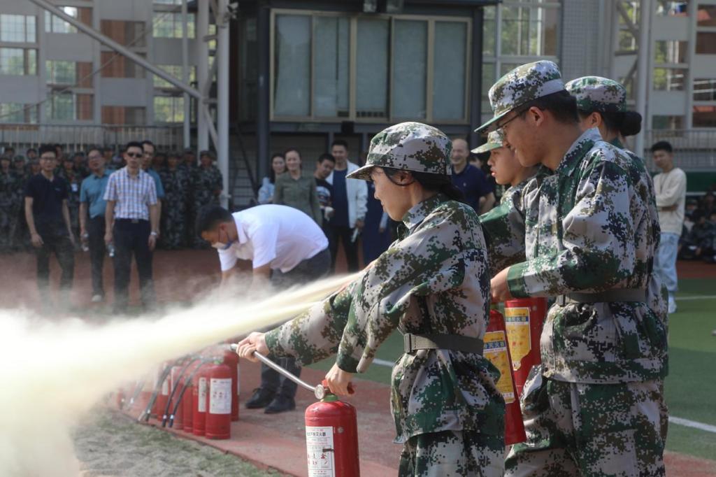 湘安消防公益中心相关人员,我校保卫处、学工部、各学院职能部门负责人及2022级全体新生参加消防演习。