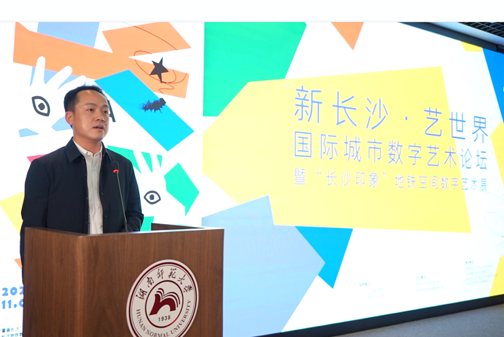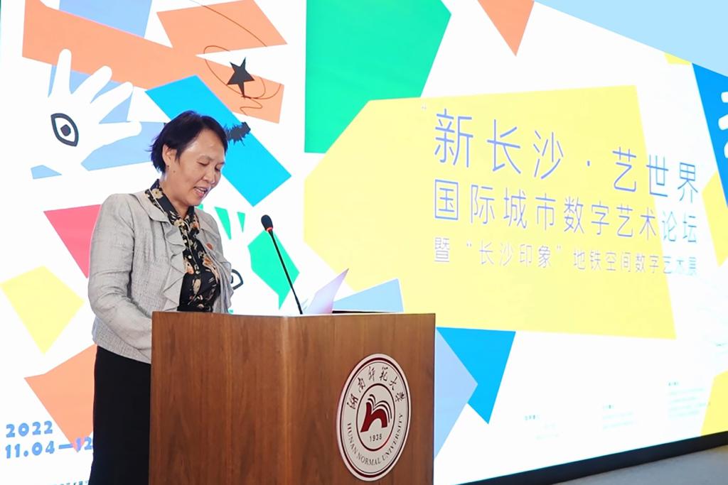 谢资清向与会来宾介绍了本次活动的组织情况,并认为本次活动实现了科技与艺术、学校与社会、国内与国外、城市与乡村的链接,是“数字人文”与“美育精神”融合服务长沙城市文化建设的创新之举。她强调作为湖南省属高校的排头兵,我校将进一步推进校城融合工作,通过学校团队的深度介入,赋能城市创新发展,开创教育、文化、商业和社会融合的创新模式,切实实现服务社会、服务公众的目标。