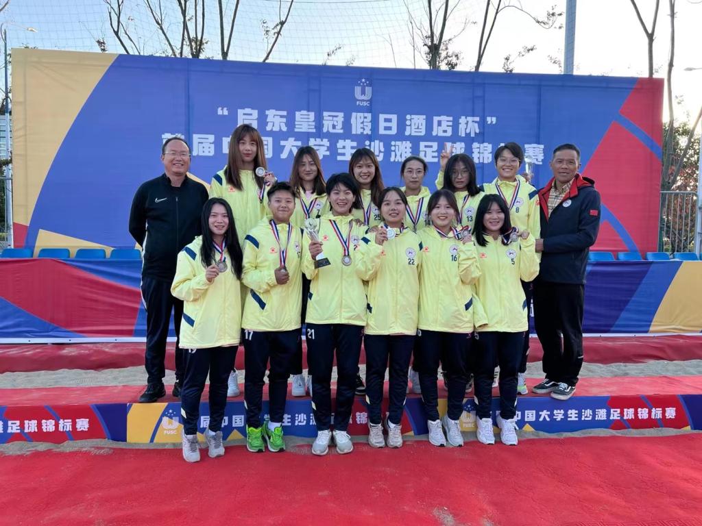 我校男子足球队与女子足球队共同努力,再攀高峰,不断改写我校男子足球队及女子足球队参加全国比赛的历史最好成绩,双双获得首届中国大学生沙滩足球锦标赛(江苏启东2022-11)全国亚军。