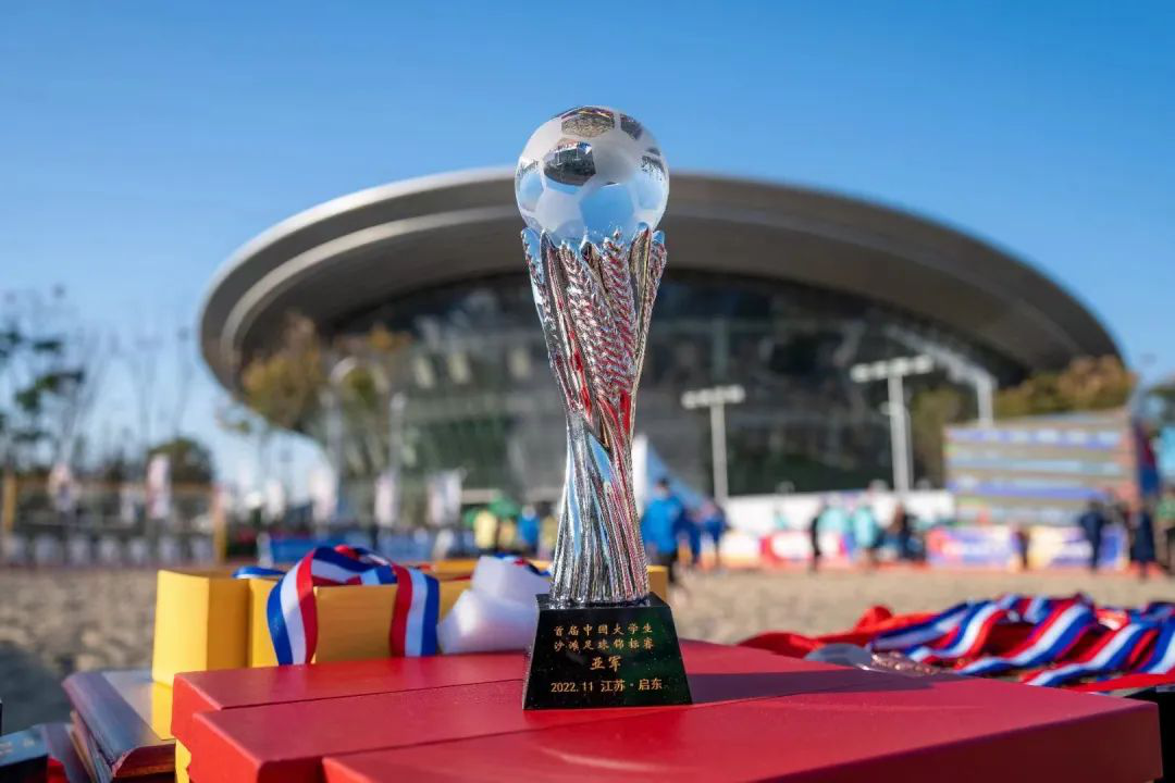 (供稿 体育学院)2022年11月3日,首届中国大学生沙滩足球锦标赛在启东蝶湖公园保利大剧院旁开赛。本届比赛有来自吉林大学、中国政法大学、上海理工大学、安博线上平台、江苏大学等16所高校的沙滩足球队参赛。